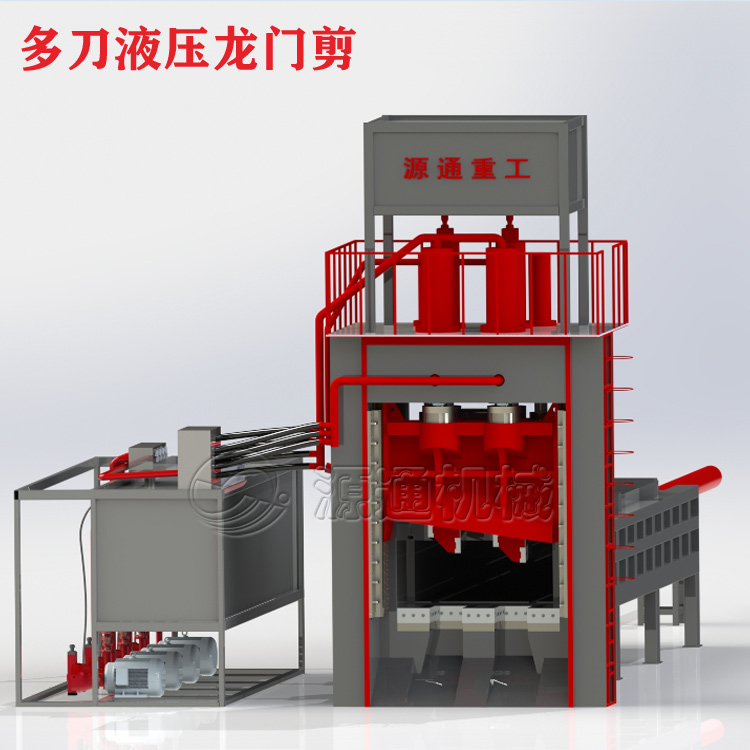 多刀液壓廢鋼剪切機(jī)適用用于金屬回收加工廠,報(bào)廢汽車拆解場,冶煉鑄造行業(yè)等, 對各種形狀的型鋼及各種金屬結(jié)構(gòu)件進(jìn)行冷態(tài)剪斷,加工成合格爐料。我們公司專利產(chǎn)品 多刀液壓龍門剪可以根據(jù)用戶的實(shí)際需求和要求,有針對性的去單獨(dú)設(shè)計(jì)一套專屬的液壓剪切機(jī)設(shè)備,常用型號:400、500、630、800、1000、1250噸多刀剪切機(jī)、可以一刀三段、 一刀五段,更好的提高使用效率。多刀片(多頭)設(shè)計(jì),剪切塊度小精準(zhǔn)度高整齊統(tǒng)一,避免二次剪切。源通重工多刀龍門剪采用推料箱送料,料箱尺寸大,處理料型種類多,且安裝有耐磨層經(jīng)久耐用。 系統(tǒng)采用德國西門子、日本三菱、法國施耐德等知名品牌,工作過程現(xiàn)實(shí)自動花化、安全可靠。人機(jī)交互界面,可視化剪切過程監(jiān)控,操作簡便,省工省時(shí)。具有遙控操作遠(yuǎn)程協(xié)助和故障診斷功能,使用靈活方便。工作效率高,安全性高、且大大低勞動強(qiáng)度和人 工成本。